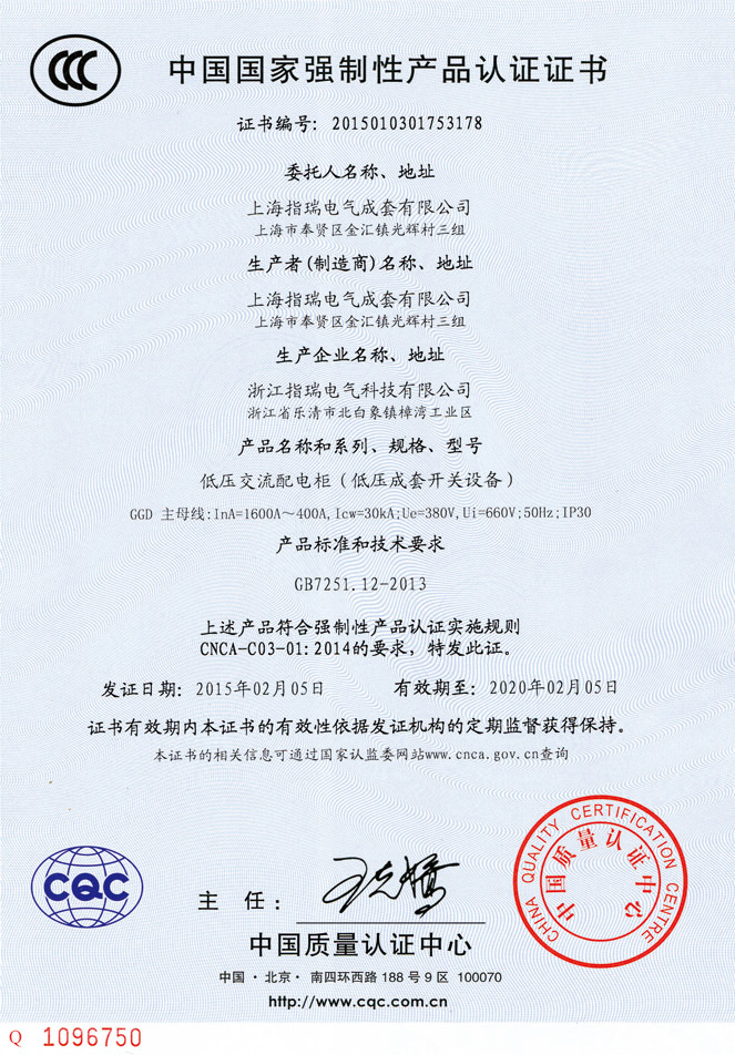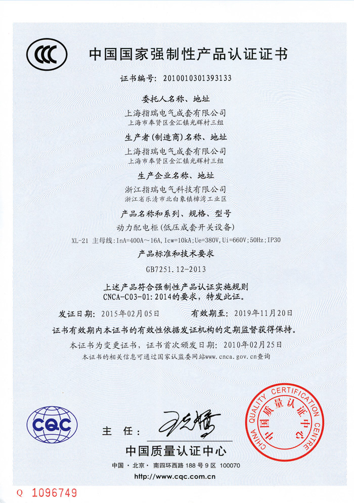 中国国家强制性产品认证证书
